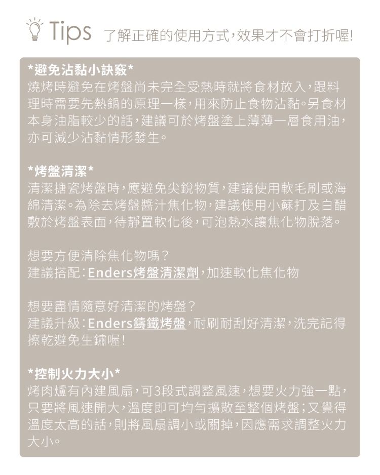 ✔ 木炭持久燒烤、聰明烤盤防油等功能設計