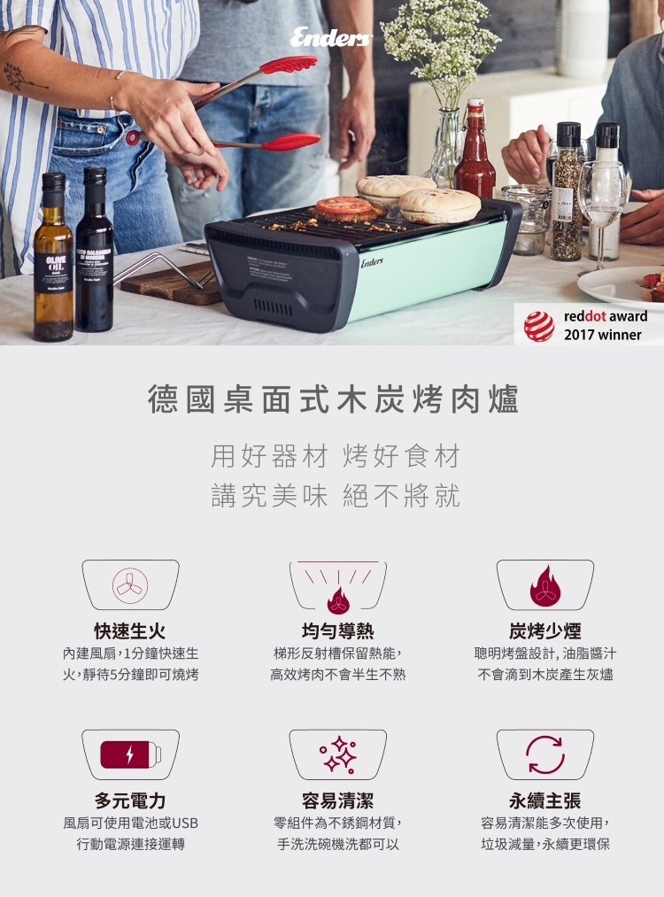 本款為Enders極光系列烤肉爐 操作簡單、快速生火、炭烤少煙!