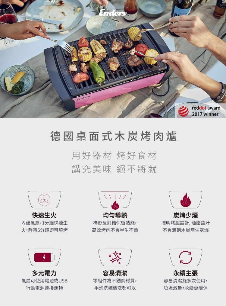 本款為Enders極光系列烤肉爐 操作簡單、快速生火、炭烤少煙!