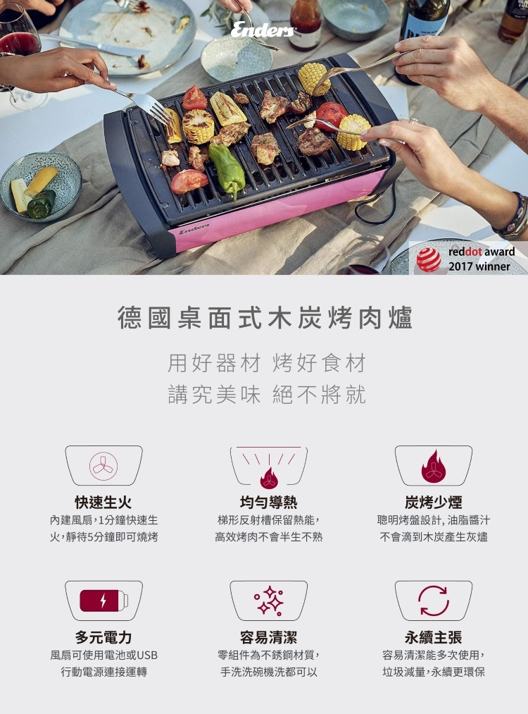 德國Enders桌面式木炭烤肉爐的巧妙設計,榮獲紅點設計獎的殊榮。