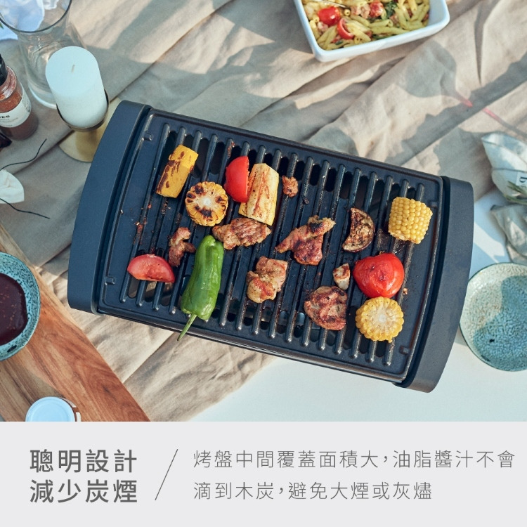● 炭烤少煙:聰明烤盤設計,油脂醬汁不會滴到木炭,避免產生灰燼或大煙