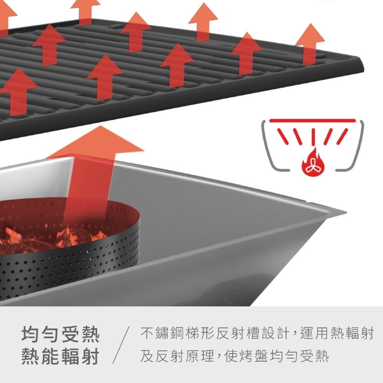 ● 均勻導熱:梯形不鏽鋼反射槽,保留熱能,高效烤肉不會半生不熟