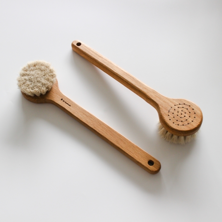 「長柄洗澡刷」長度39公分,搭配橢圓狀的大面積刷毛,適合身高165公分以上或想要刷毛面積較大需求的人。