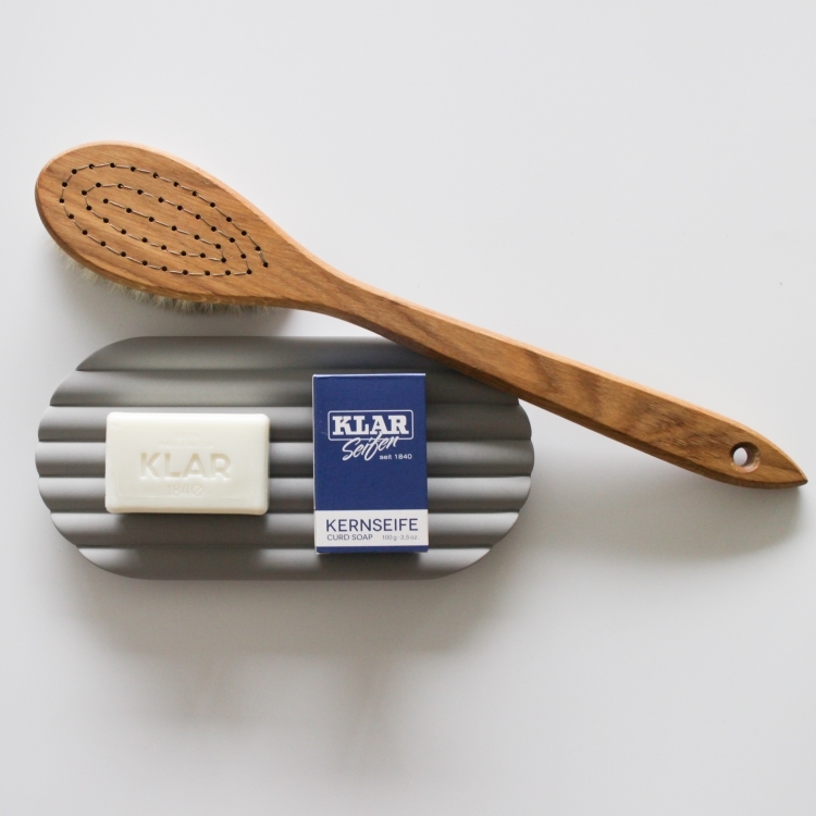◆ 圓頭長柄沐浴刷 + 全能凝乳皂100g