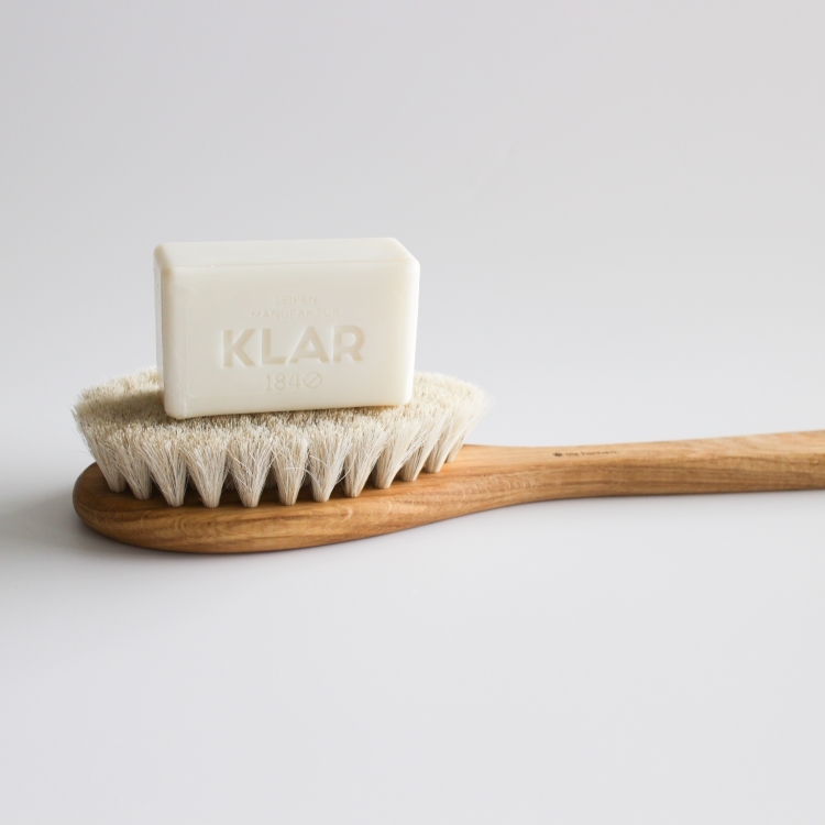 ★本組合含有瑞典 iris hantverk 長柄洗澡刷 x1 + 德國KLAR Seifen植皂 (經典全能凝乳皂、女仕皂或紳士皂 可選擇) 100g x1