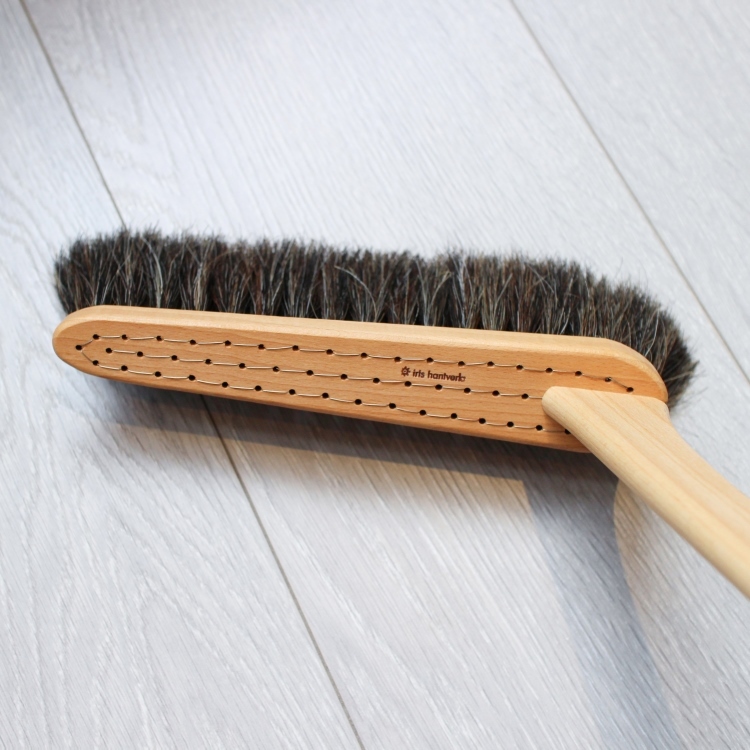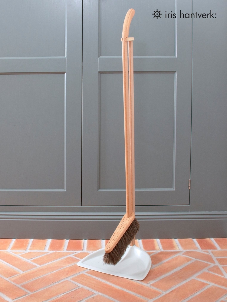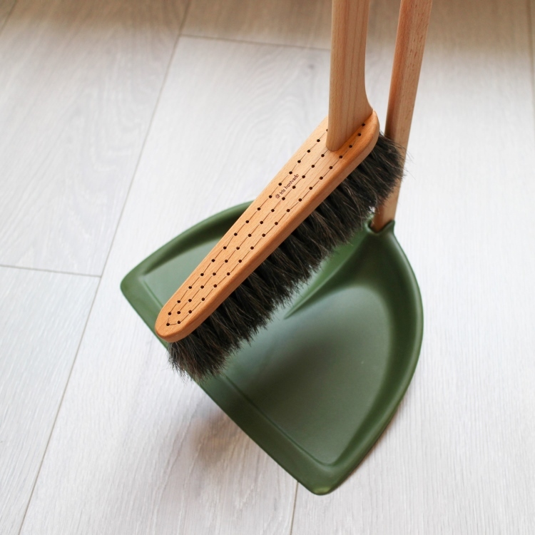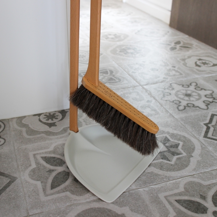 刷毛以馬毛材質手工製作。木製長柄由經過櫸木製成,畚箕由PP製成。