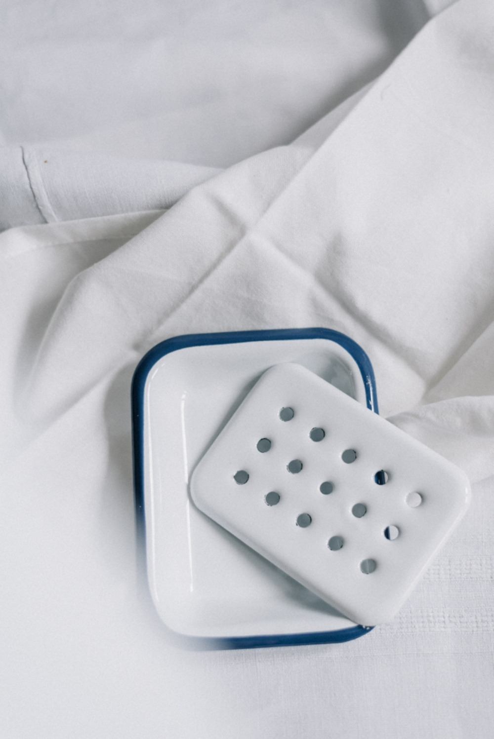 限定|復古琺瑯肥皂盤 藍白色