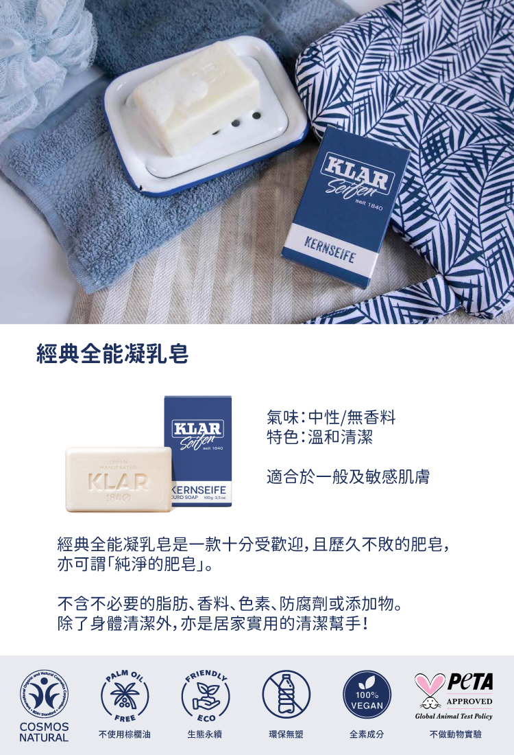德國 KLAR Seifen 經典全能凝乳皂,是一款十分受歡迎,且歷久不敗的肥皂。