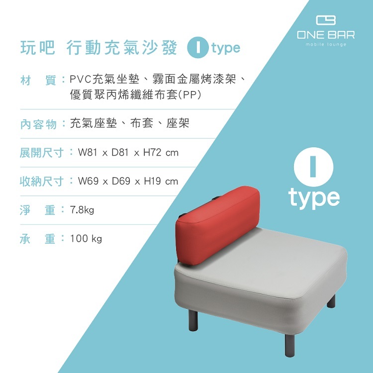 ONE BAR / 玩吧 行動充氣沙發 I type