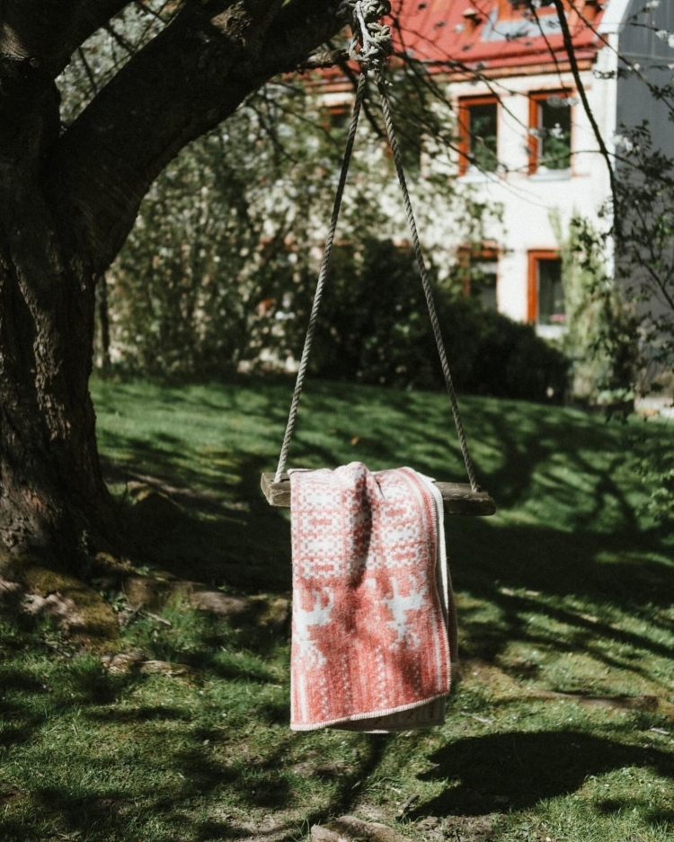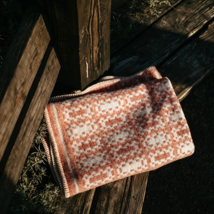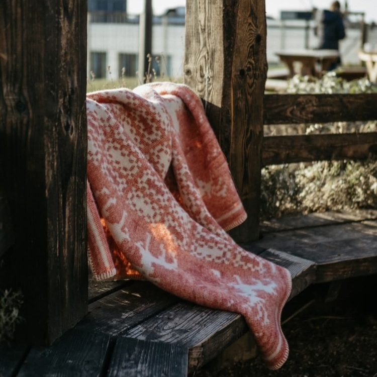 厚實溫暖、大小適中的羊毛毯,坐著時可蓋於膝上,躺臥時可當加厚的多元毯。