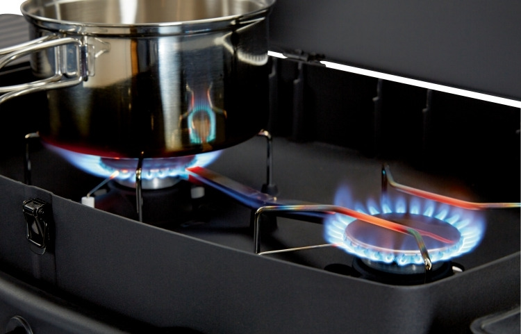 ● 雙口火源:雙口獨立的可調節爐台,用於直接或間接火力的煎烤烘煮。